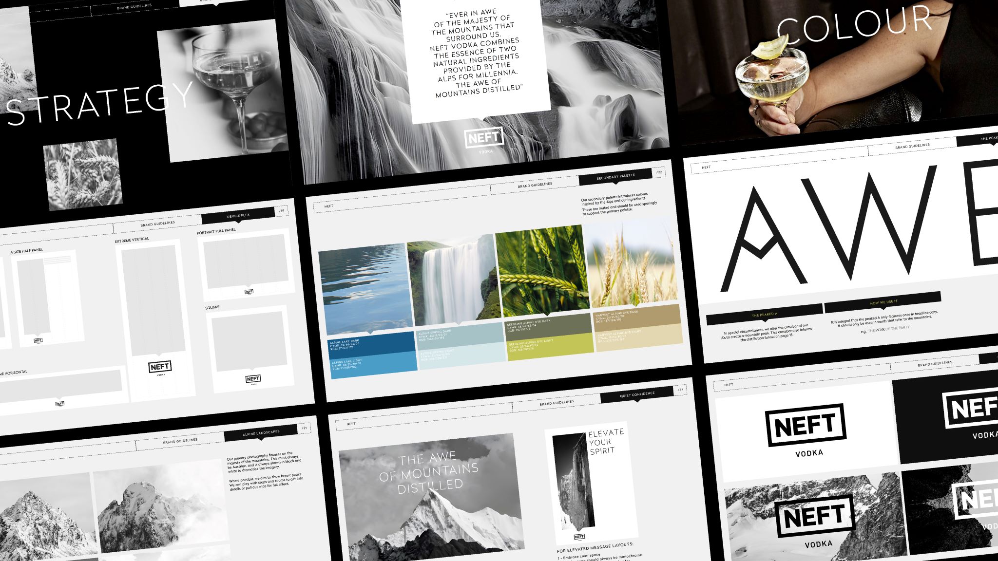 In contrast, NEFT’s new brand identity captures the quiet grandeur of the Alps. The cinematic photography dramatizes the Alpine connection. Images show expansive landscapes loaded with negative space, from out-of-the-ordinary perspectives. Whilst headlines are written as a call to action with a sense of greatness, such as “Elevate Your Spirit”, “Taste Greatness” and “Take the Night to New Heights”.